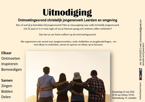 Leerdam Praise nodigt u/je uit voor de 17e Openluchtdienst! We kijken er weer enorm naar uit om samen met andere Leerdammers God te aanbidden en elkaar te ontmoeten. Tom Baksteen hoopt te spreken over het thema ‘Grenzeloos geliefd’. De band Connect zorgt voor de muzikale begeleiding. We zingen bekende en nieuwe liederen. Een boekje met de liedteksten wordt vooraf uitgedeeld. Tijdens de dienst is er een gebarentolk aanwezig die de liederen en gesproken tekst omzet in gebaren.